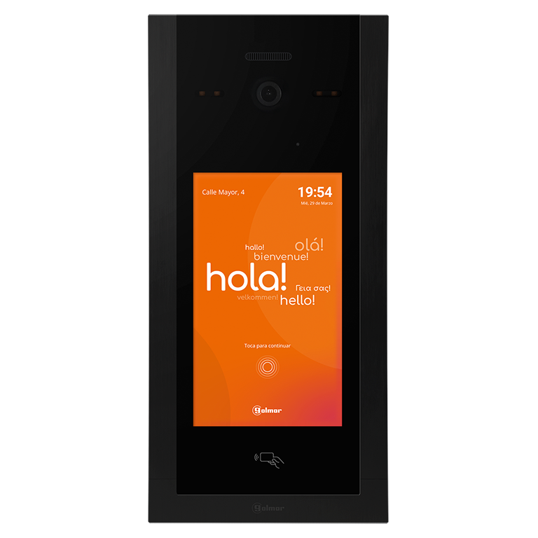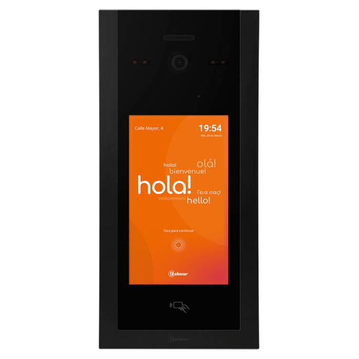 7" TFT LCD-kleurenscherm met een resolutie van 600x1024 px dat drie oproepmethoden biedt: door het invoeren van het appartementnummer, zoeken in de contactenlijst of via knoppen.